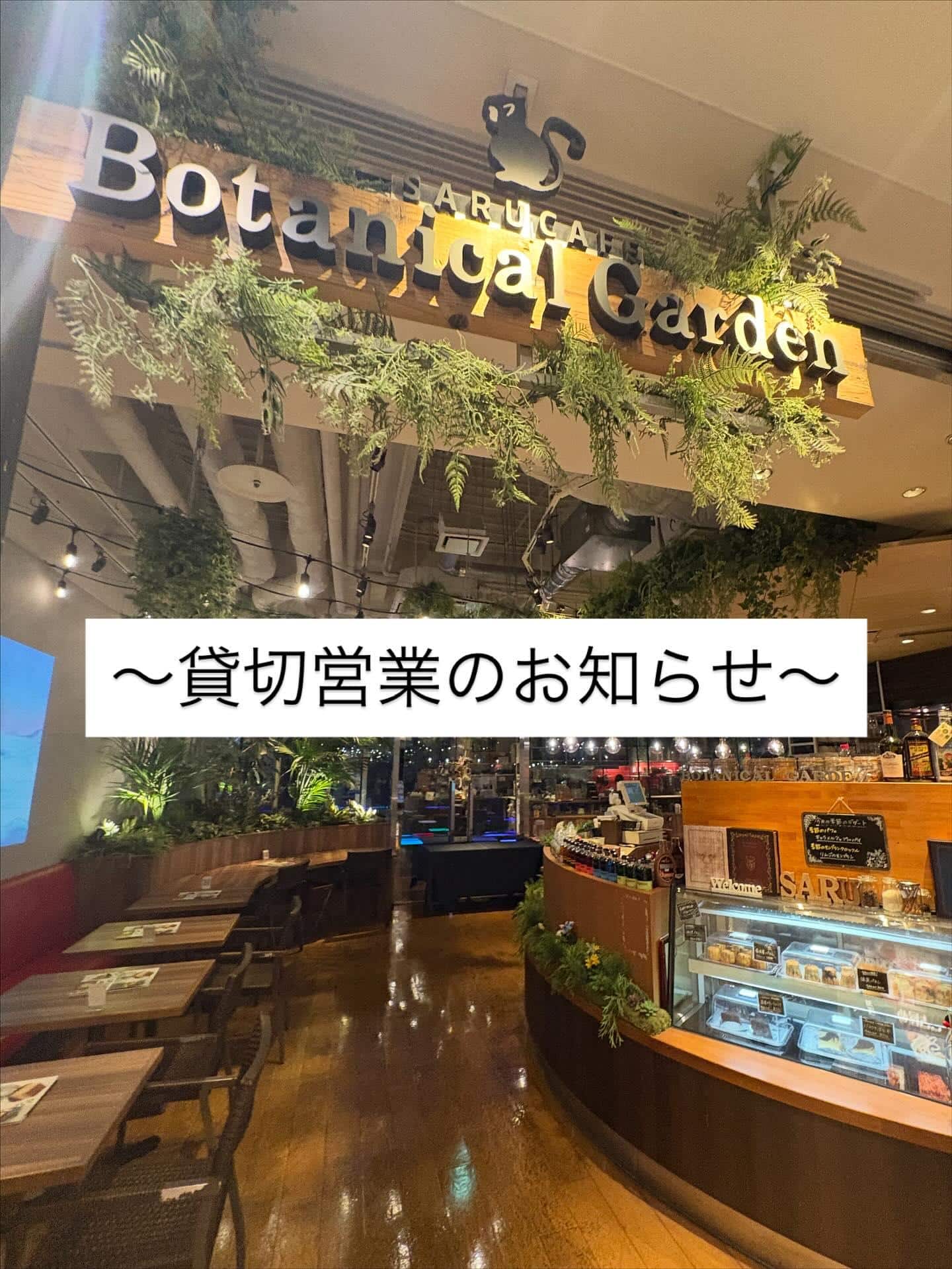 【貸切営業のお知らせ】ボタニカルガーデンサルカフェ/名古屋カフェ/2次会利用/貸切営業